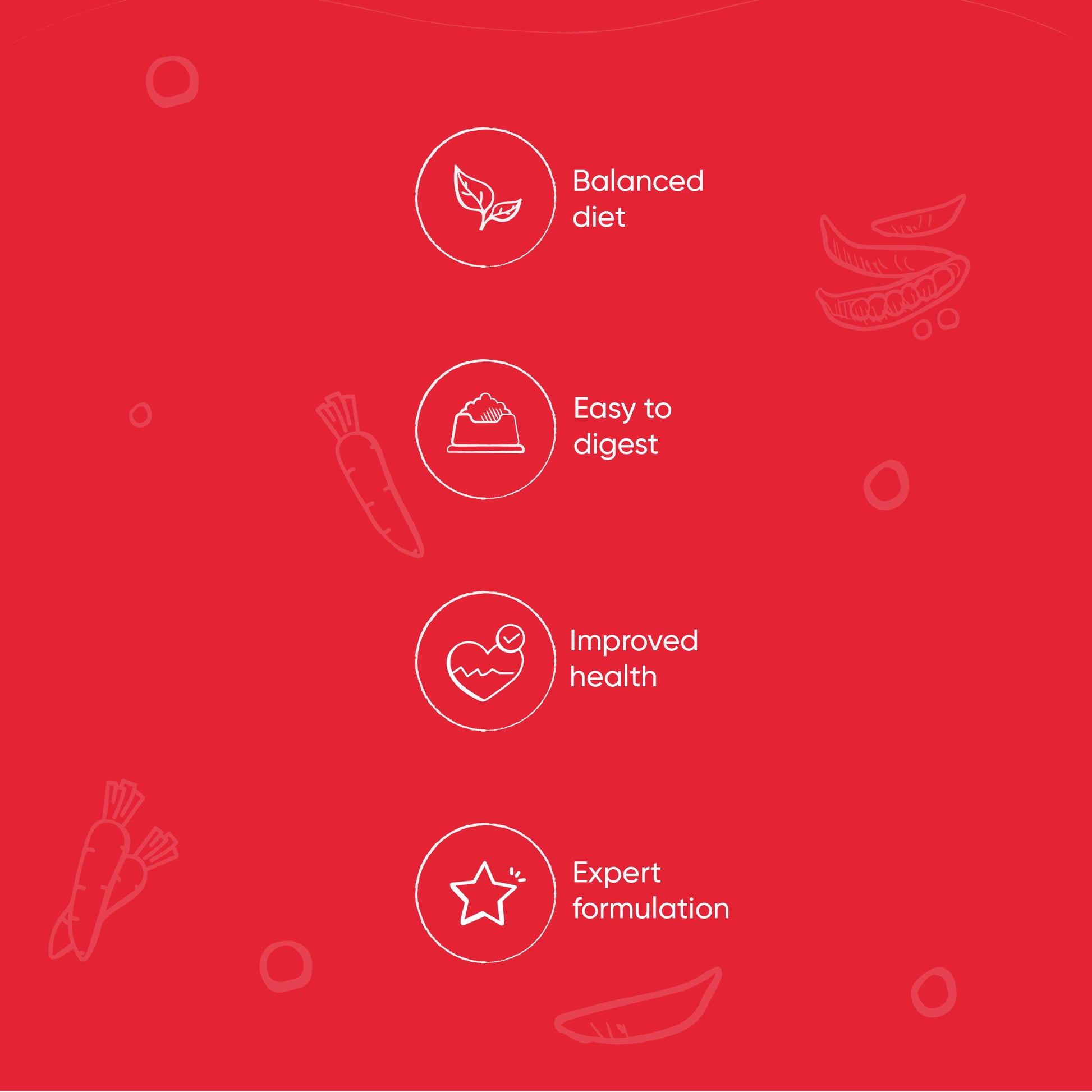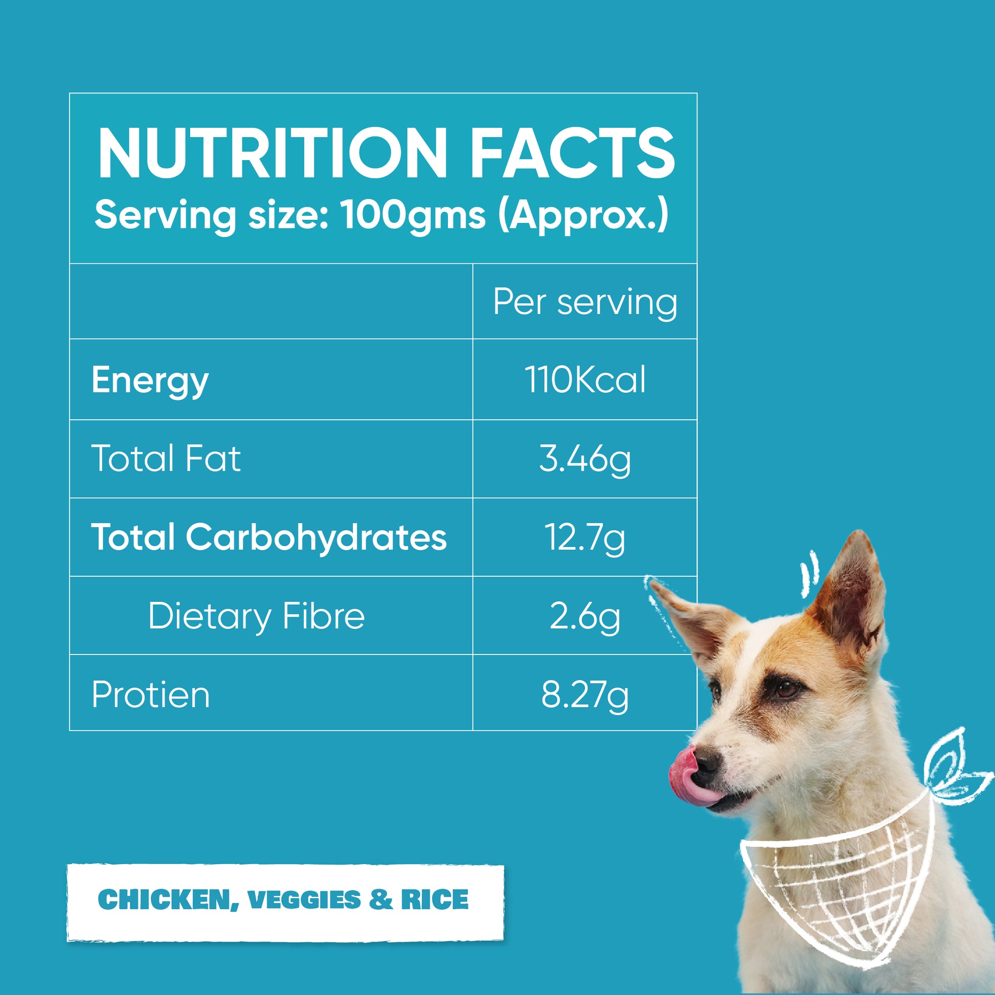 Chicken, rice, pumpkin, carrot, peas, turmeric and herb blend.